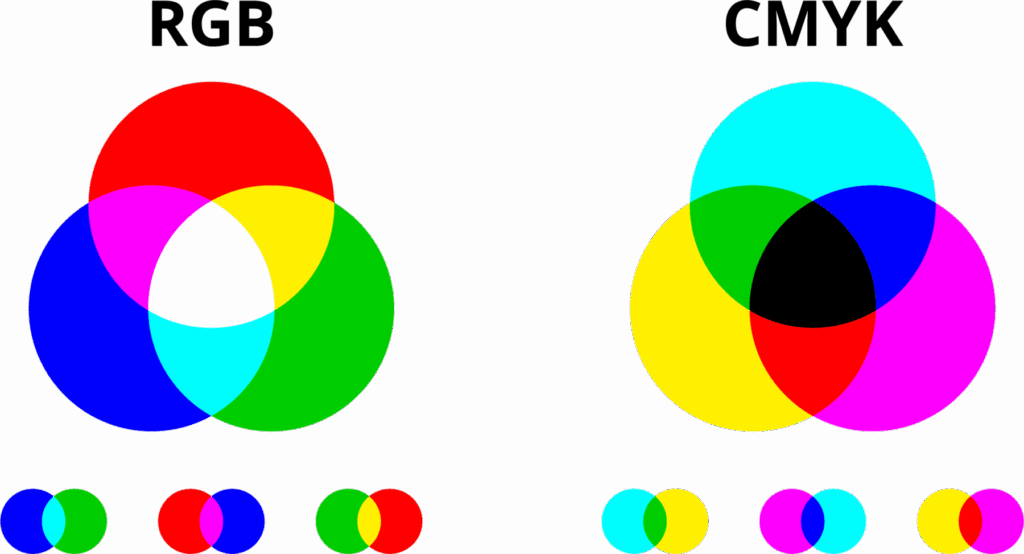 Because RGB uses light and CMYK uses pigment, the colour ranges (or gamuts) they can produce are very different. RGB can display more colours than CMYK can print. This means that some of the bright and saturated colours you see on your screen simply can’t be replicated on a printing press.