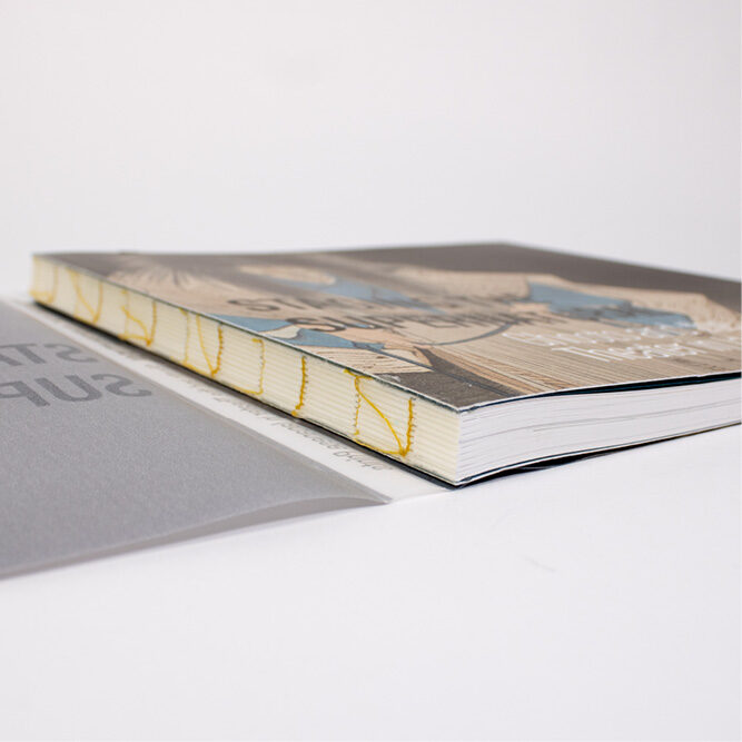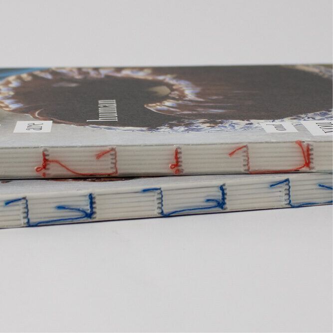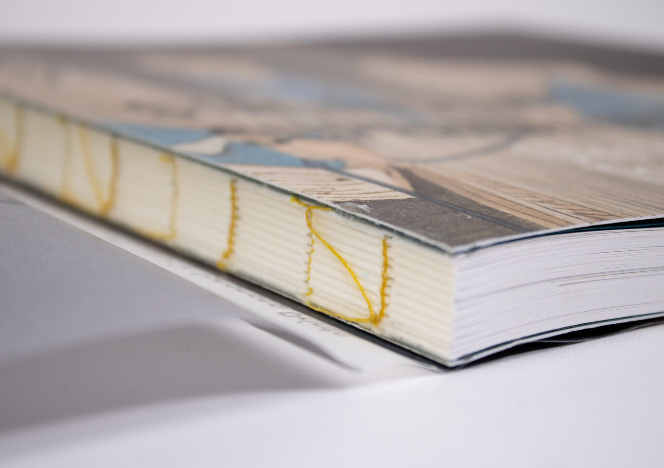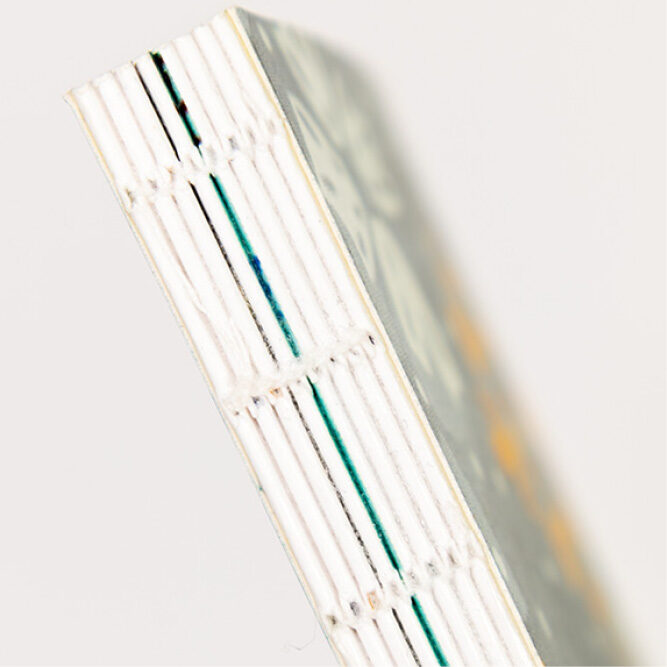 Exposed bindings highlight the craftsmanship of the book. The visible stitching adds a tactile, artisanal quality that appeals to those looking for a modern or raw aesthetic. It turns the binding into a design feature rather than something to be hidden.