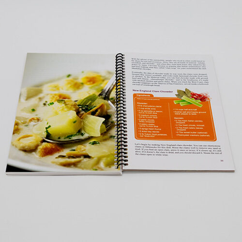 Plastic spiral binding involves punching holes along the edge of a book block and inserting a plastic coil that winds through the holes from end-to-end. The coil is crimped at both ends to prevent it from unwinding. This method allows the book to lay completely flat when open and even fold back on itself, making it ideal for hands-on or reference-heavy materials.