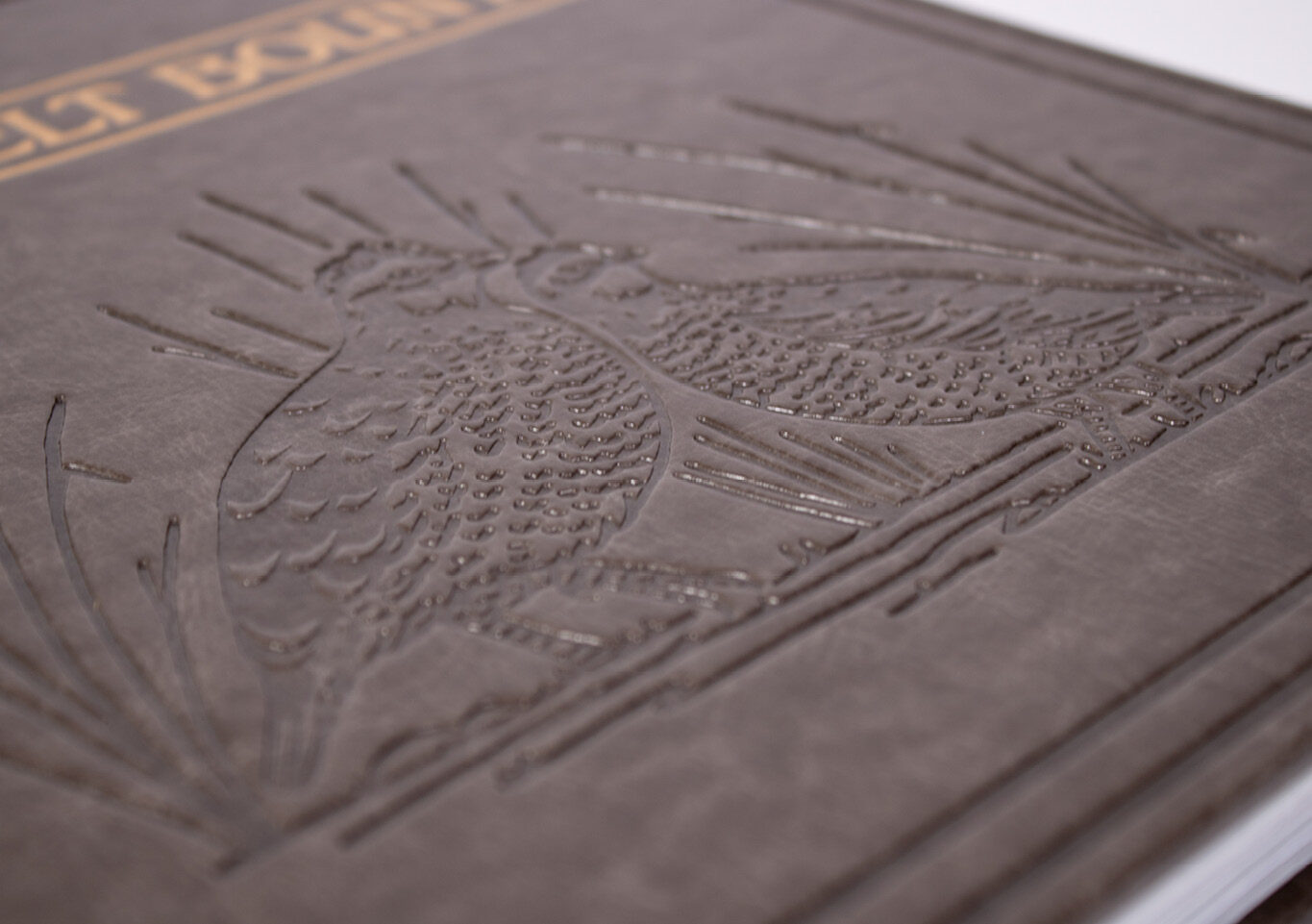 Burnishing a book cover involves pressing a heated copper die onto the surface of the cover material (for example, a Fiscagomma) to create a subtle discolouration. It’s not the same as embossing or foil stamping, although it can be combined with those techniques.