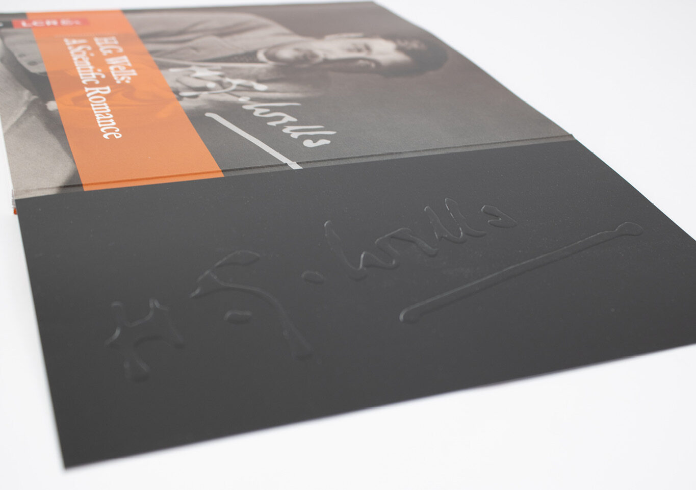 Debossing is a process where a design is pressed into the surface of a book cover or page, creating a RECESSED impression. It starts with a custom metal die that’s stamped into the material using pressure. It is often used with ink or foil for added contrast.