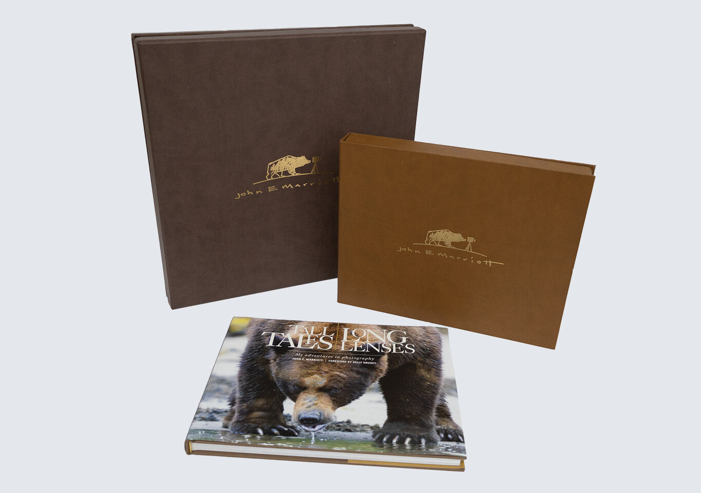 In 2017, renowned Canadian wildlife photographer John Marriott celebrated his 20th anniversary as a professional photographer. To mark this milestone, he envisioned a photography book that would not only showcase his most iconic work but also serve as a legacy piece for his loyal followers. What began as a simple idea evolved into one of Friesens Corporation’s most ambitious and creatively demanding projects to date. The result? Tall Tales, Long Lenses…a masterclass in design ingenuity, craftsmanship, and collaborative excellence.