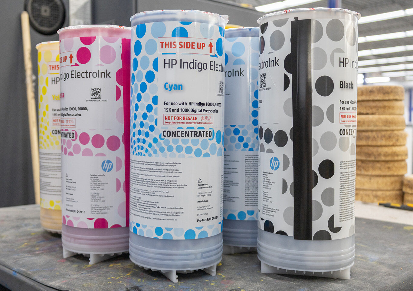 La HP Indigo 50000 utilise une encre spéciale pour créer des images haute résolution. L'encre est chargée dans la presse sous forme de pâte concentrée et diluée automatiquement avec de l'huile à l'intérieur de la machine, créant ainsi un mélange fluide prêt à imprimer.